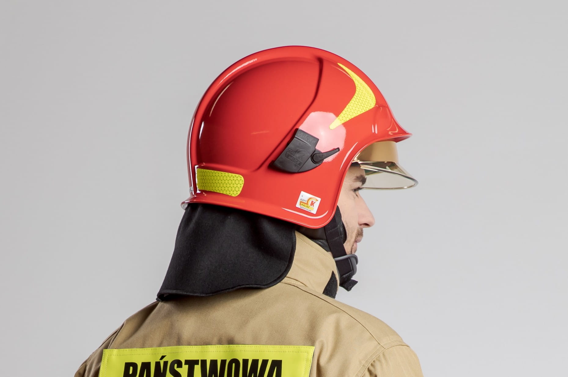 Hełm typu B, przeznaczony dla strażaków do stosowania podczas akcji ratowniczo-gaśniczych, a zwłaszcza podczas walki z ogniem w budynkach i innych obiektach