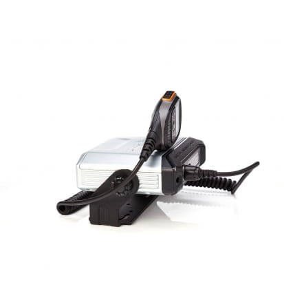 - Obsługa radiotelefonu z poziomu mikrofonogłośnikaz przyciskami i wyświetlaczem LCD