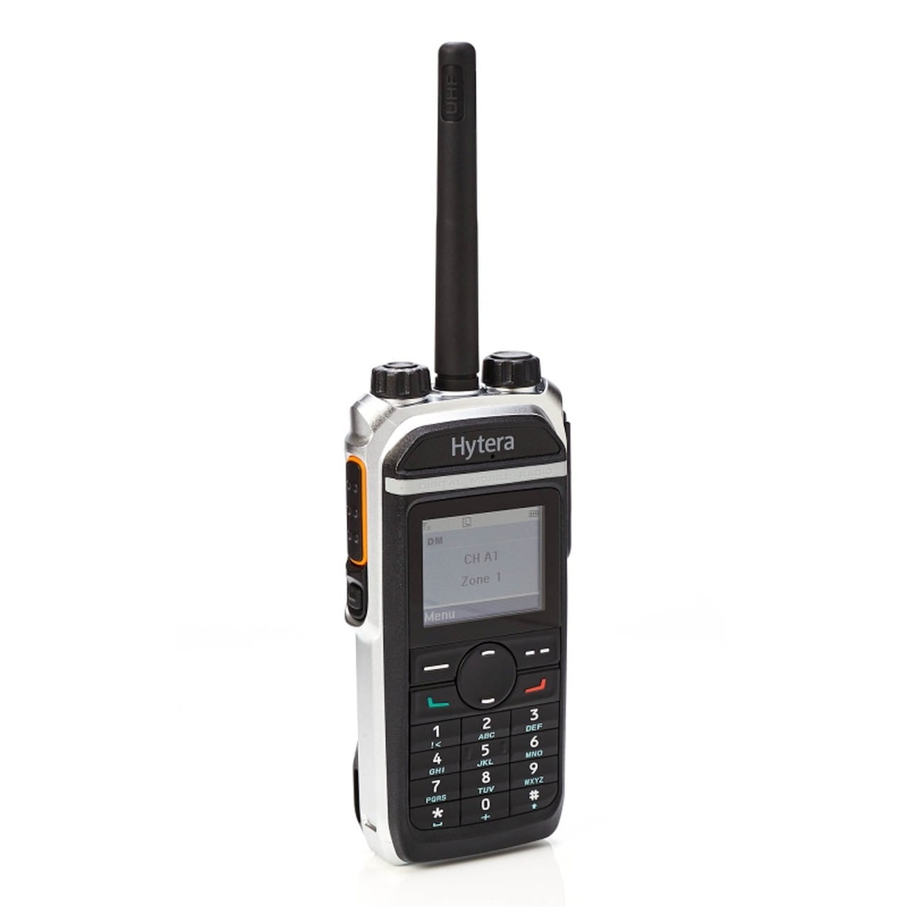 Radiotelefon przenośny Hytera PD685 to wszechstronne rozwiązanie, które doskonale sprawdzi się w każdych, nawet najcięższych warunkach. Hytera PD685 wyposażony jest w duży kolorowy wyświetlacz, który wydatnie ułatwia i przyśpiesza obsługę radiotelefonu. 1.8 calowy wyświetlacz LCD TFT zapewnia łatwy dostęp do informacji i funkcji terminala. PD685 posiada łatwo dostępne i ergonomiczne przyciski w tym także pełną klawiaturę. Rozdzielone anteną, dwa pokrętła radiotelefonu przenośnego są odsunięte od siebie w ten sposób zmniejsza się ryzyko pomyłki podczas obsługi w rękawiczkach lub w warunkach słabego oświetlenia. PD685, tak jak inne radiotelefony Hytera, posiada także dedykowany przycisk alarmowy, konfigurowalny wg. potrzeb użytkownika. Wbudowany głośnik o wysokiej mocy zapewnia wystarczającą słyszalność w większości zastosowań. Radiotelefon posiada szereg dodatkowych funkcji jak w pełni konfigurowalny alarm wibracyjny, głosowa informacja o wybranym kanale.